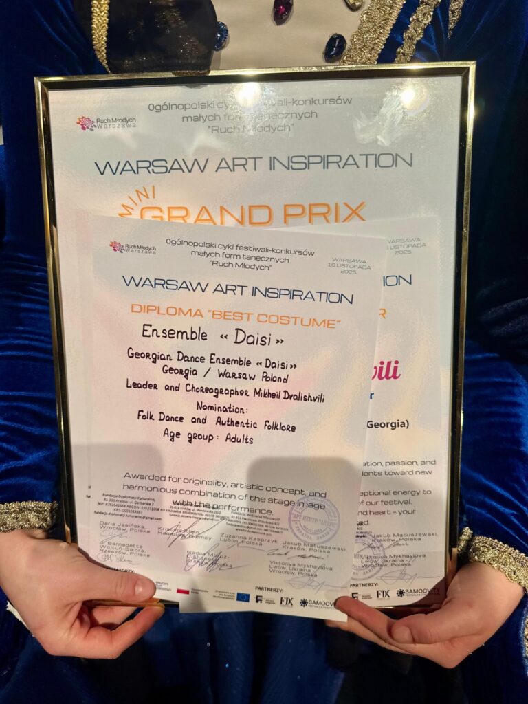 Warsaw Art Inspiration 2025 წელსაც აღმოჩნდა პლატფორმა, სადაც სხვადასხვა ქვეყნის ქორეოგრაფიული ჯგუფები ერთმანეთს გამოცდილებას, სტილსა და ხედვებს უზიარებდნენ. ქართული ფოლკლორის გამარჯვებამ კი ხაზგასმით წარმოაჩინა ჩვენი კულტურის შესაძლებლობები თანამედროვე საფესტივალო სივრცეში.