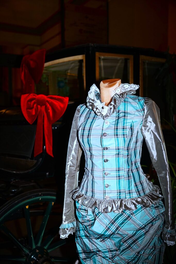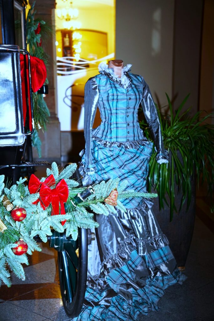 ღონისძიების ვიზუალურ ნაწილს ამდიდრებდა ალდონა ციმალას (Art & Donna) მიერ შეკერილი 1874 წლის კაბის რეპლიკა, რომელიც მთავარ ვესტიბიულში იყო გამოფენილი. კაბა წარმოადგენს ფრანგული მოდის ორიგინალური კატალოგიდან აღებული მოდელის ზუსტ ასლს და კარგად ერწყმოდა ძველი ბირჟის ისტორიულ ინტერიერს. ალდონა ციმალას მიზიდულობა ისტორიული მოდის მიმართ ოჯახური ტრადიციიდან მოდის – მისი ბებია კერავდა პოლონელი არისტოკრატი ოჯახისთვის. დიზაინერი, რომელიც სპეციალიზებულია ისტორიულ, საქორწინო და საცეკვაო კაბებზე, ამ ექსპონატით პატივი მიაგო ძველ ხელობას.