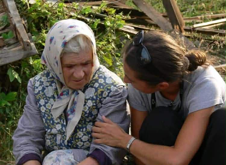 დოროტა პაჟიმესი ცდილობს დაეხმაროს ქართველ ქალბატონს გორში, რომელიც დაბომბილ სახლში აღმოაჩინა. 2008 წელი, გორი. “როდესაც მოისმინა, რომ ვსაუბრობდი რუსულად, ატირებულმა დამიწყო ხვეწნა, არ დამეხვიტრა, რადგან იყო შოკში”